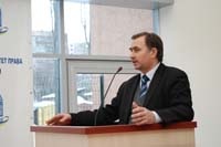 Завідувач відділення дистанційного навчання Б.С.Кушнір запевнив аудиторію, що за високими інформаційними технологіями, що використовуються у Київському університеті права НАН України, велике майбутнє, адже вони дають змогу одержати юридичну освіту за допомогою персонального комп’ютера через всесвітню мережу Internet.