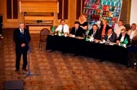 До слова також запрошувалися начальник управління освіти Рівненської області І.В.Вєтров, його колега по виробничому цеху – начальник управління освіти і науки Миколаївської облдержадміністрації Мельніченко В.В., викладачі та студенти. На завершення вернісажу з короткою, проте досить яскравою промовою виступив сам митець Костянтин Степанюк. Я вважаю, зазначив художник, що творити прекрасне можна лише від щирої душі. Людська душа розуміє лише те, що ми звикли вважати відчуттями, далеко не все можна виразити за допомогою існуючого набору понять. На щастя, у людей є спосіб універсального вираження – це твори мистецтва. Чому з усіх видів мистецтва, я вибрав саме живопис – тому, що коли відбуваються якісь події у моєму житті – в свідомості з’являються картини, які просяться на полотно, саме вони найкраще і найточніше відображають мої думки і почуття. Висловлюю щиру вдячність усім, хто виявився небайдужим до моєї творчості, у першу чергу, професору Ю.Л.Бошицькому, завдяки його організаторському таланту, глибокому розумінню значення мистецтва в житті людей, особливо студентської молоді, цей творчий проект став реальністю.
