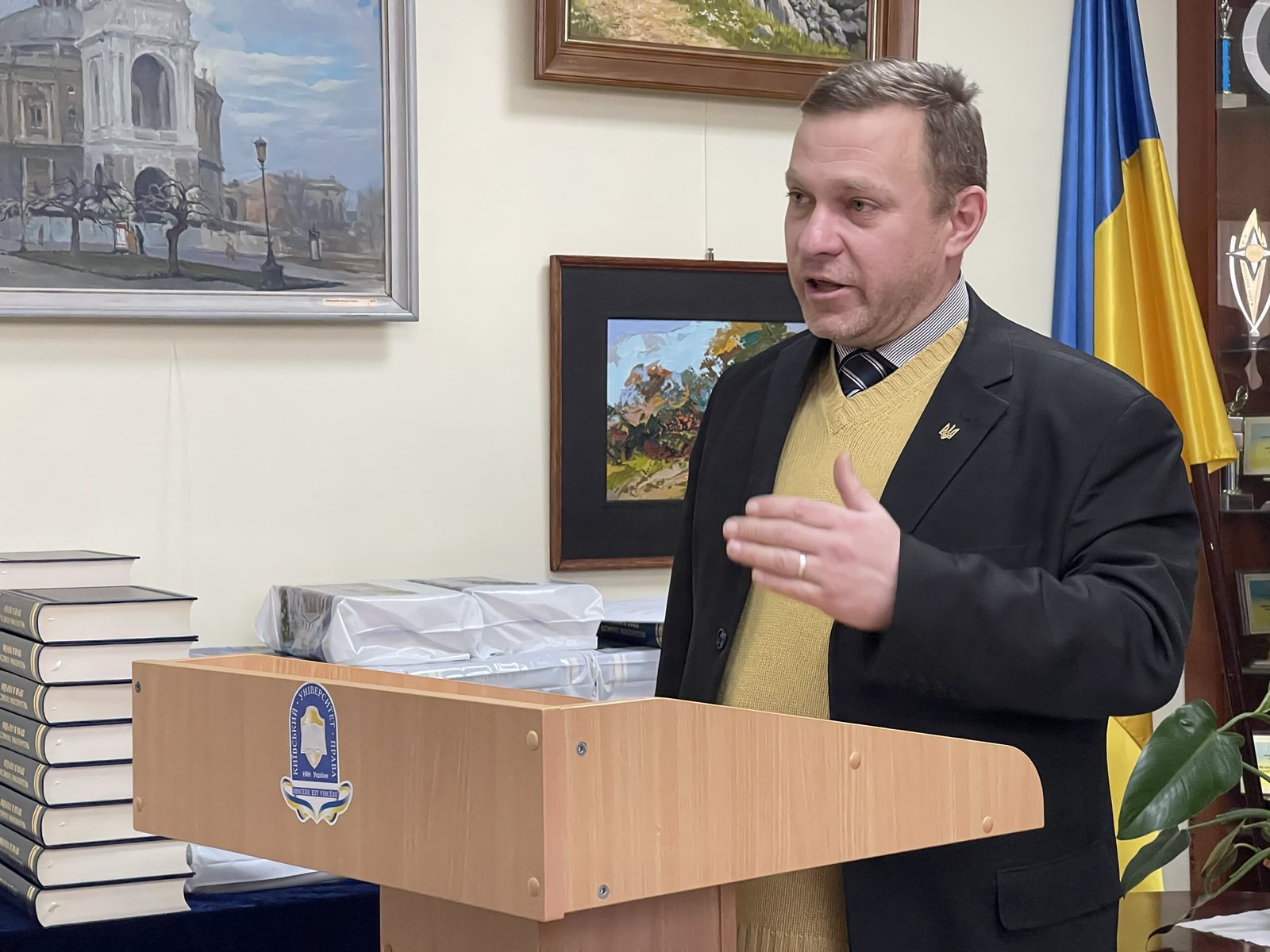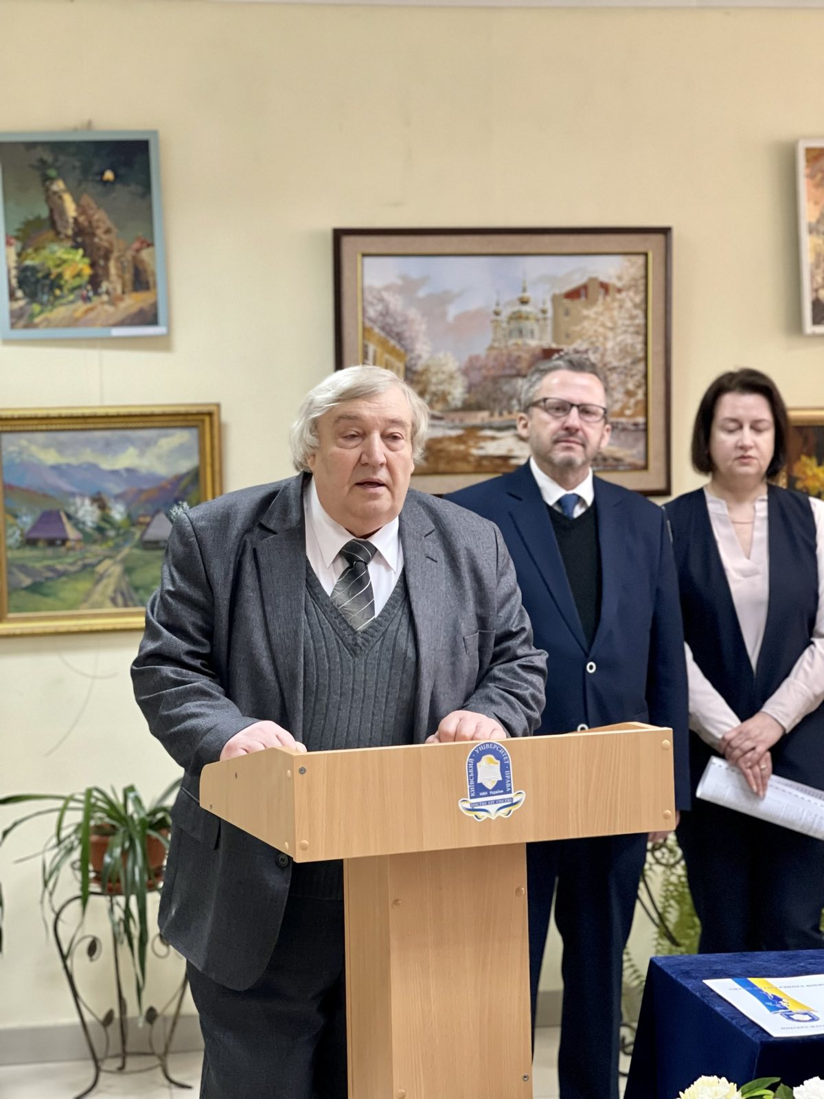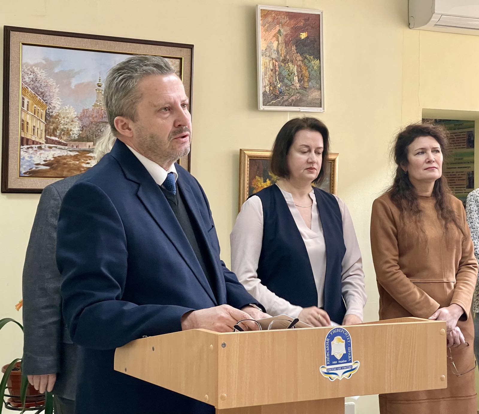 Особливу увагу ректор акцентував на тому, що, серед викладачів, так і серед здобувачів є активні учасники територіальної оборони та лав Збройних Сил України.