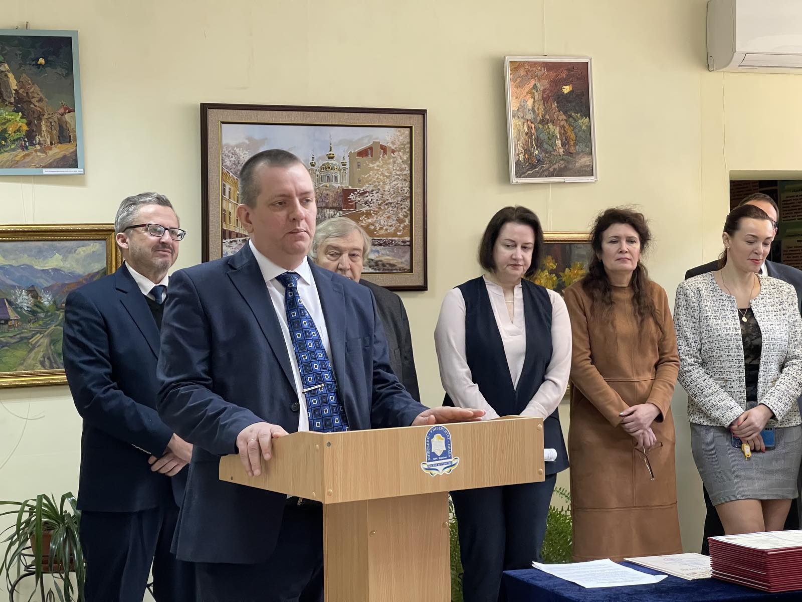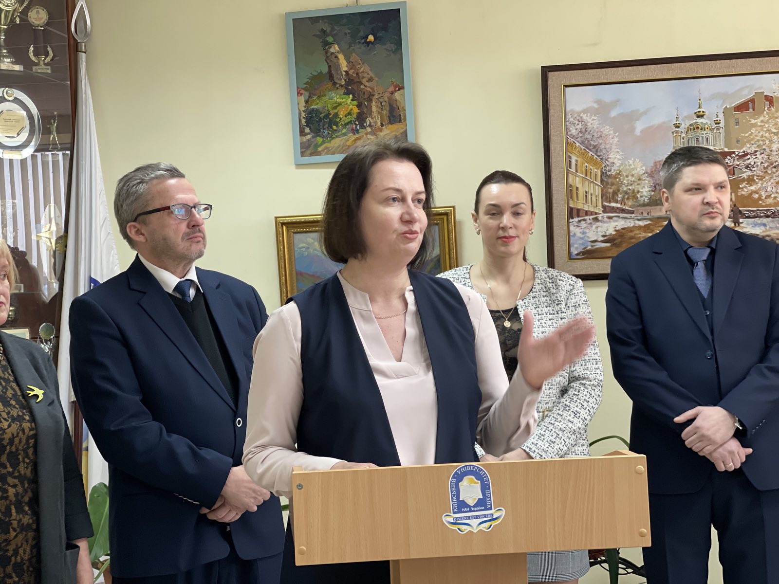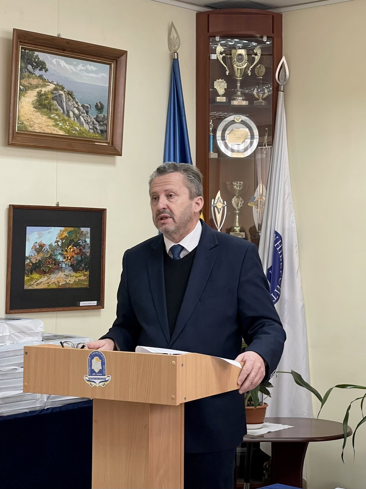 Особливу увагу ректор акцентував на тому, що, серед викладачів, так і серед здобувачів є активні учасники територіальної оборони та лав Збройних Сил України.