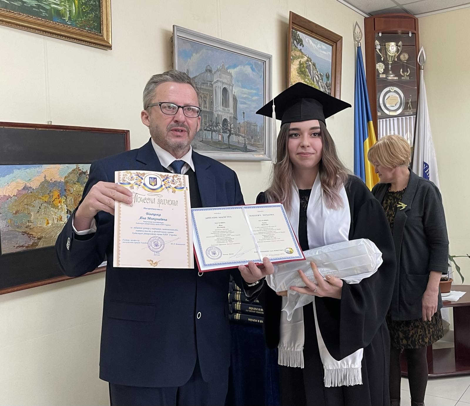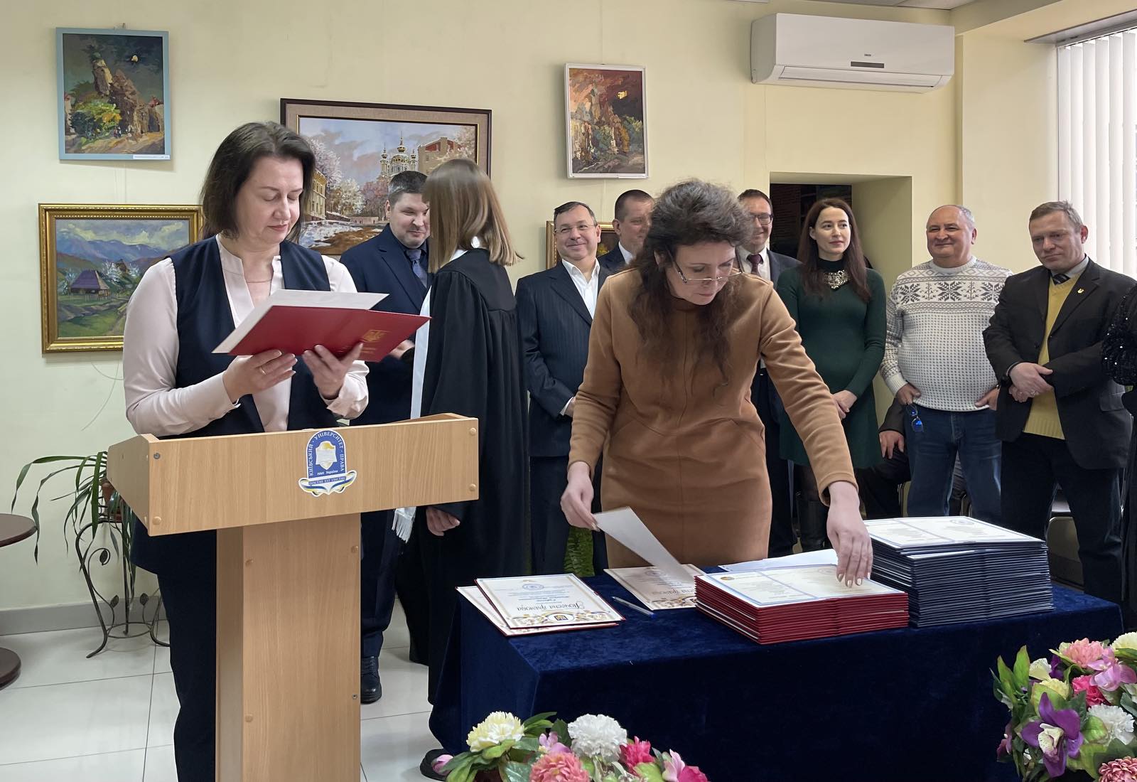 Після всіх привітань, проректорка з навчально-методичної роботи Олена Антонова оголосила наказ «Про завершення навчання», на підставі якого здобувачам вищої освіти другого (магістерського) рівня присуджено освітні ступені та видано документи про освіту. Дипломи отримали 50 магістрів, із них – 20 дипломи з відзнакою.