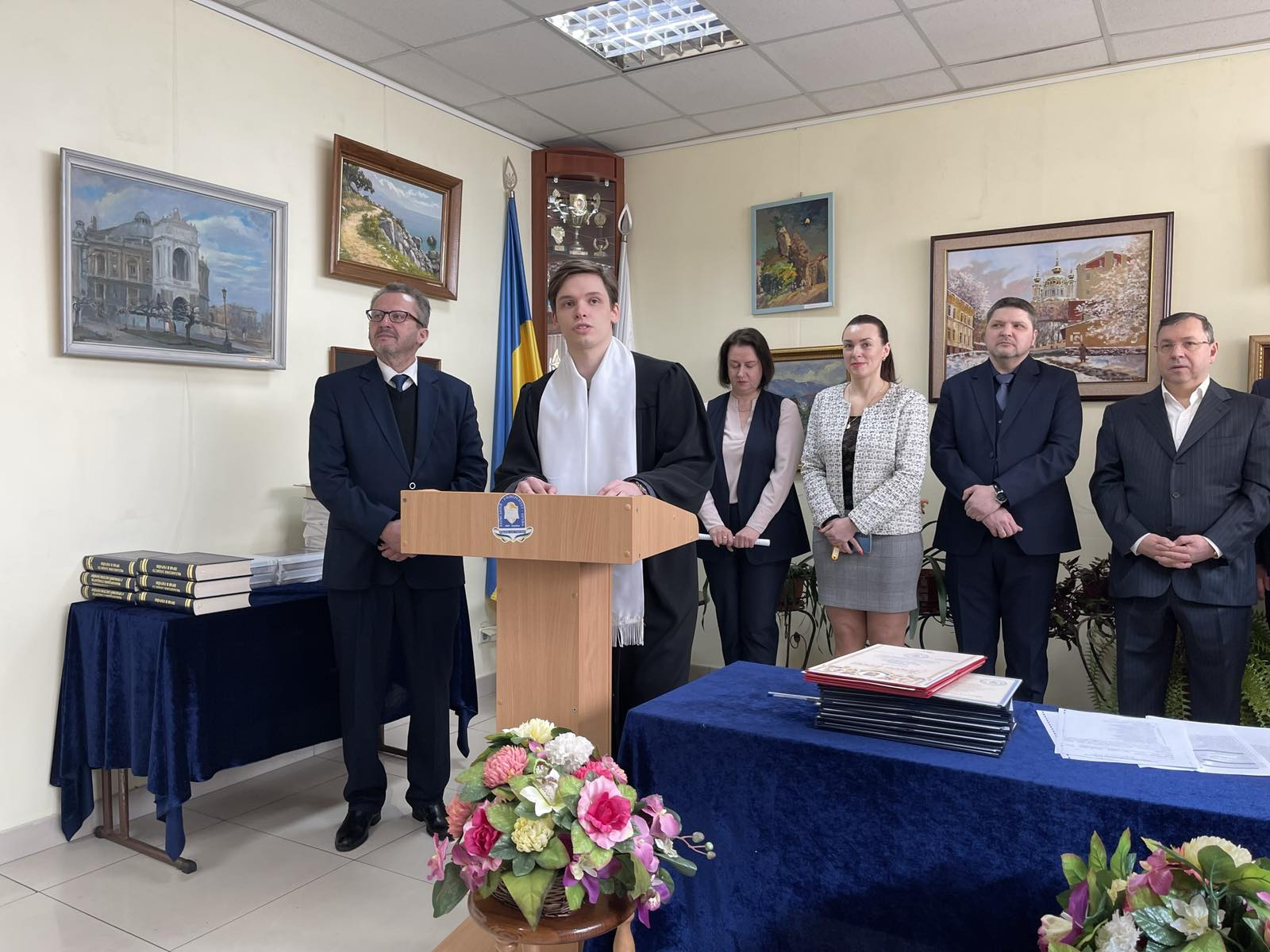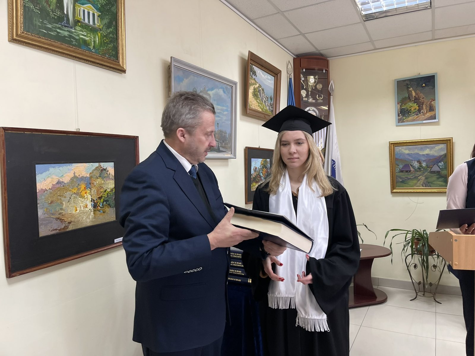 Від випускників зі словами подяки виступив Данііл Радченко, щиро подякував ректорові університету за надану якісну освіту та можливість самореалізовуватись під час навчання та проходження фахової (виробничої) практики. Він зазначив, що для кожного з випускників університет став дуже близьким, майже рідним місцем, адже тут можна було отримати протягом всіх років навчання і пораду, і підтримку, а іноді й просто дуже вдалу «мотивацію», щоб все ж успішно завершити вивчення окремих дисциплін.