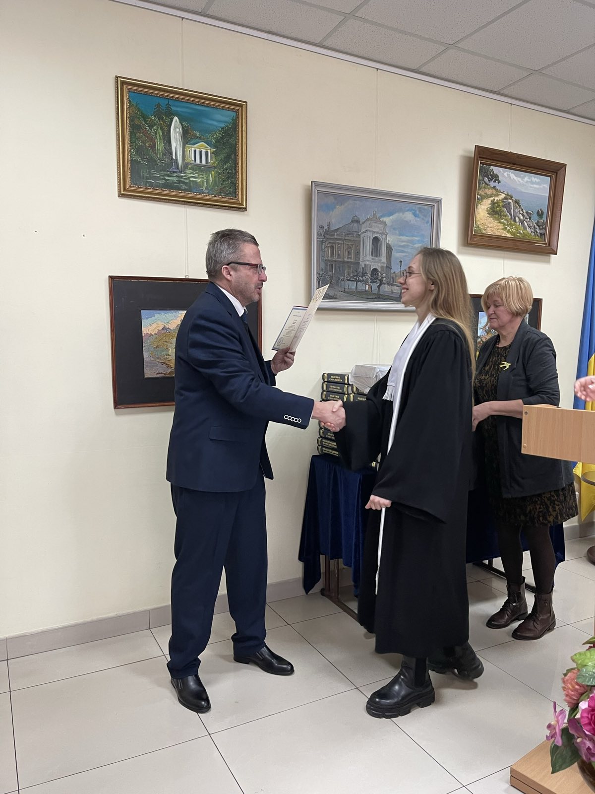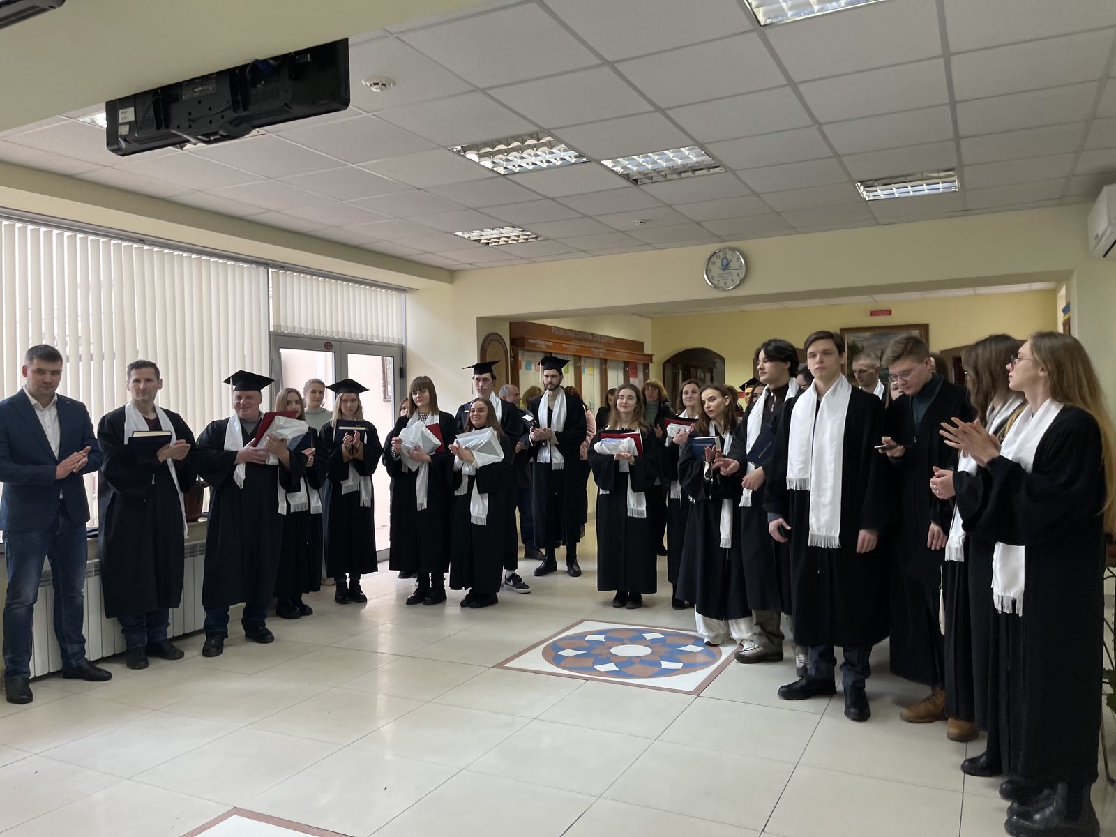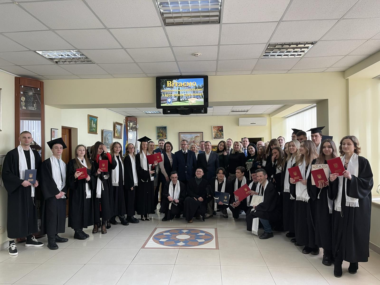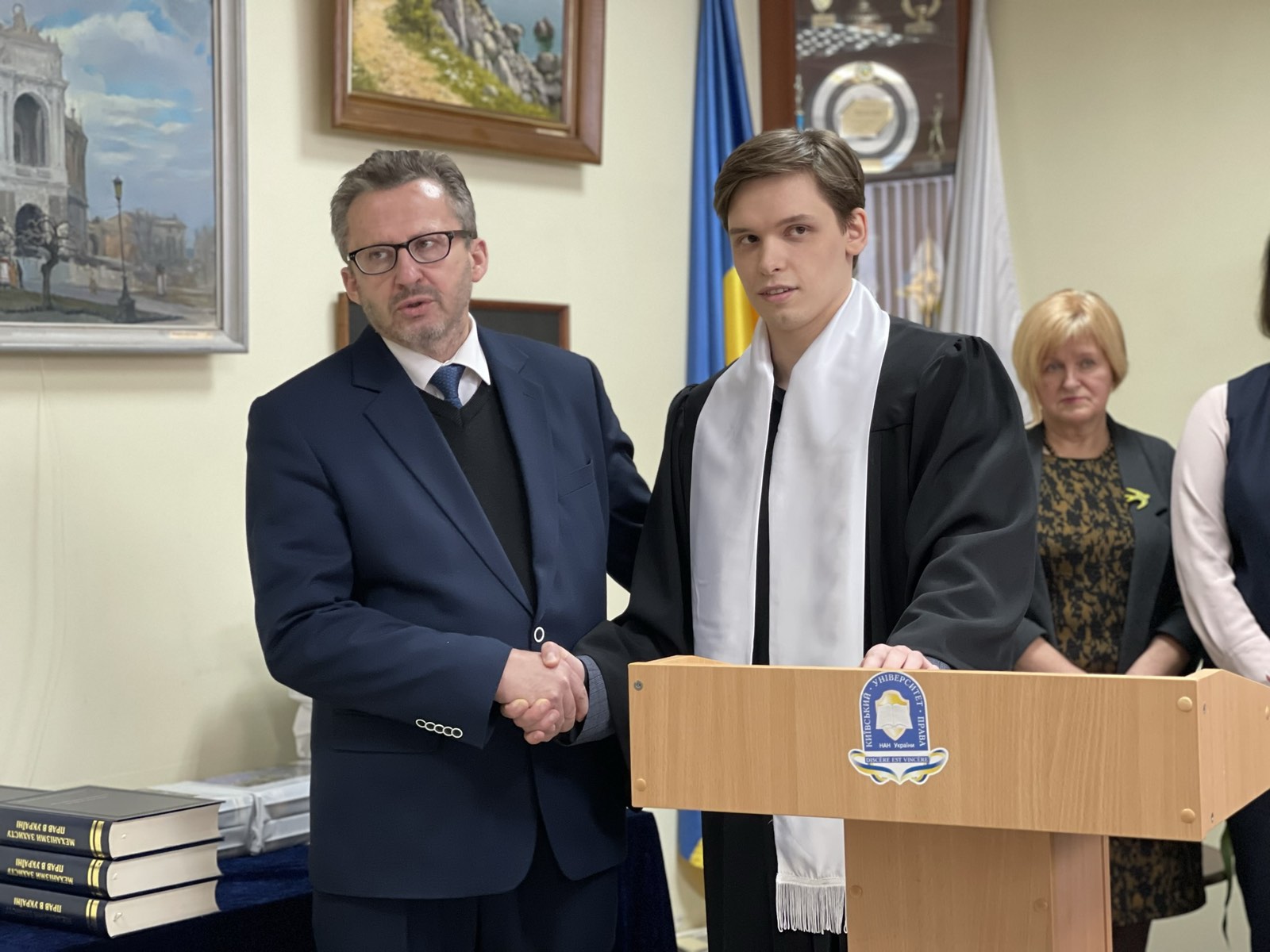 країнський дипломат, Надзвичайний і Повноважний посол України Ігор Дір привітав випускників з важливою подією у їхньому житті та запропонував їм спробувати себе реалізувати на міжнародному юридичному європейському ринку.