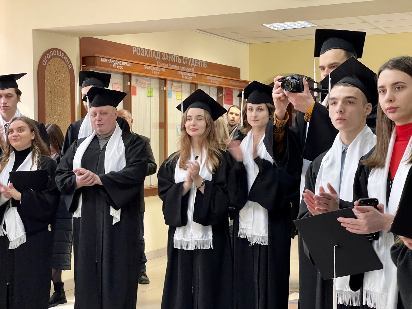 Колектив університету щиро вітає Вас з важливою подією – здобуттям освітнього ступеня «Магістр»! Переконані Ва станете достойним поповненням юридичного ринку та внесете свій вклад в нашу перемогу.