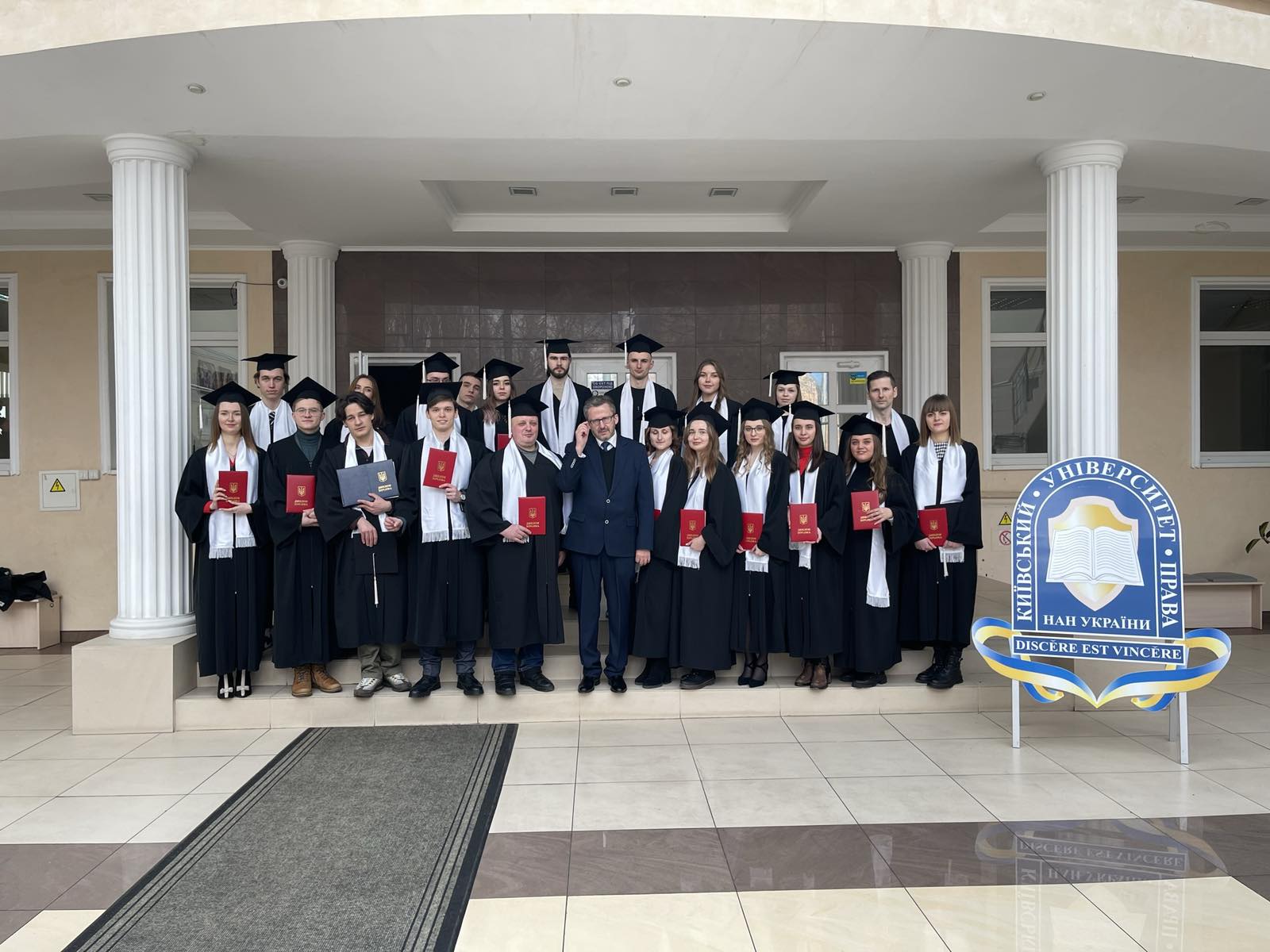 14 лютого 2023 року відбулася урочиста церемонія вручення дипломів випускникам другого (магістерського) рівня вищої освіти освітньо-професійної програми «Право» очної (денної) та заочної форм здобуття освіти Київського університету права НАН України.