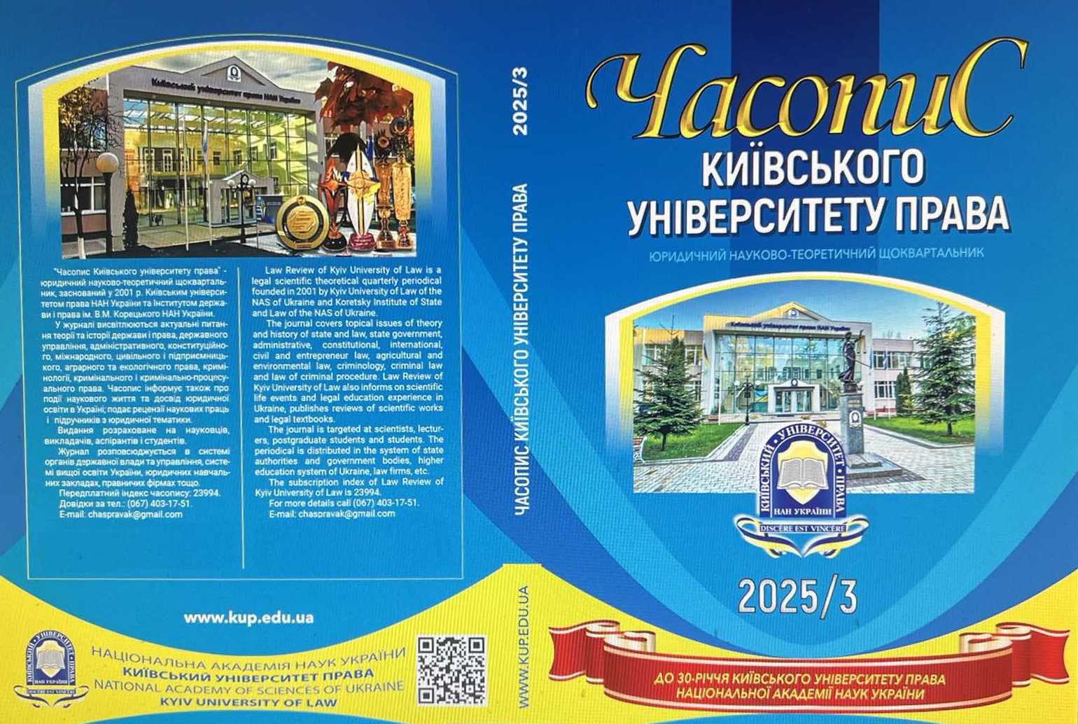 Вийшов друком ІІІ-ий випуск 2025 року юридичного науково-теоретичного щоквартальника «Часопис Київського університету права»
