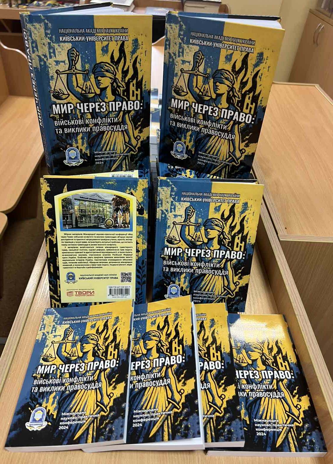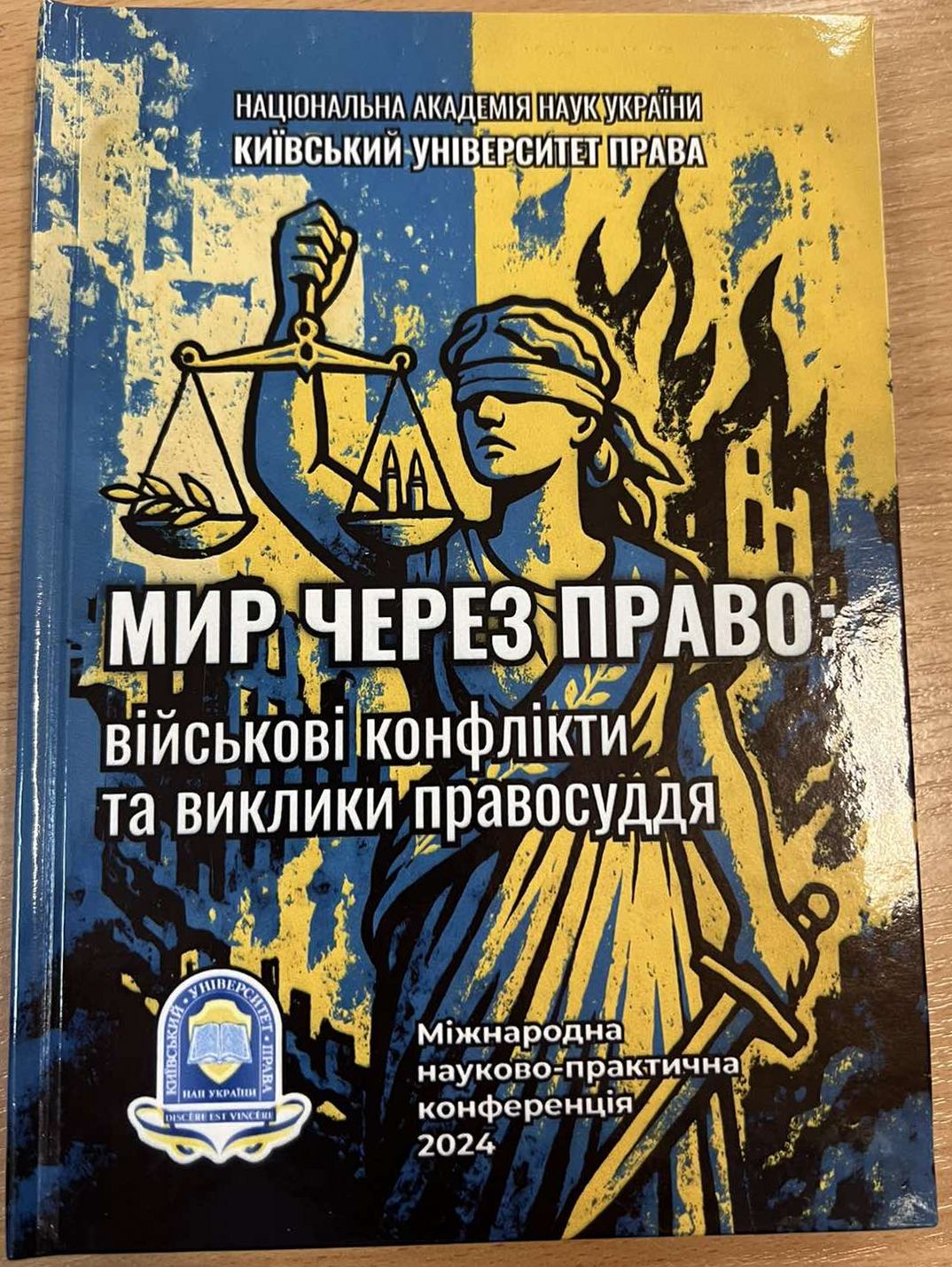 Київський університет права Національної академії наук України повідомляє про вихід друком збірника матеріалів Міжнародної науково-практичної конференції «Мир через Право: військові конфлікти та виклики правосуддя». Захід був організований за участю провідних науковців, практикуючих юристів, представників органів державної влади, судової системи, міжнародних організацій та правозахисних інституцій.