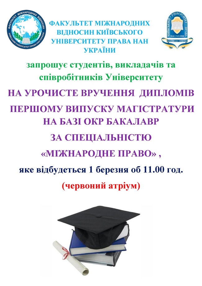 Запрошуємо на урочисте вручення дипломів першому випуску магістратури на базі ОКР Бакалавр