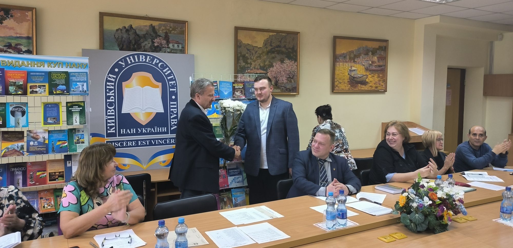 Засідання розпочалося з вітального слова голови ректорату КУП НАН України, ректора, професора Юрія Бошицького, який привітав члена ректорату, голову Ради трудового колективу КУП НАН України Володимира Павлова з нагоди Дня його народження, побажавши йому від імені колективу університету міцного здоров’я, злагоди, творчого та професійного зростання, мирного неба над головою.