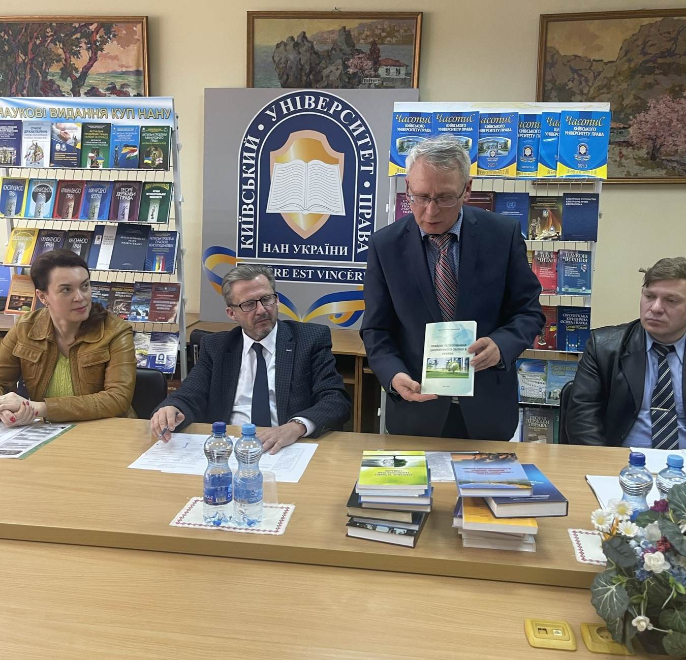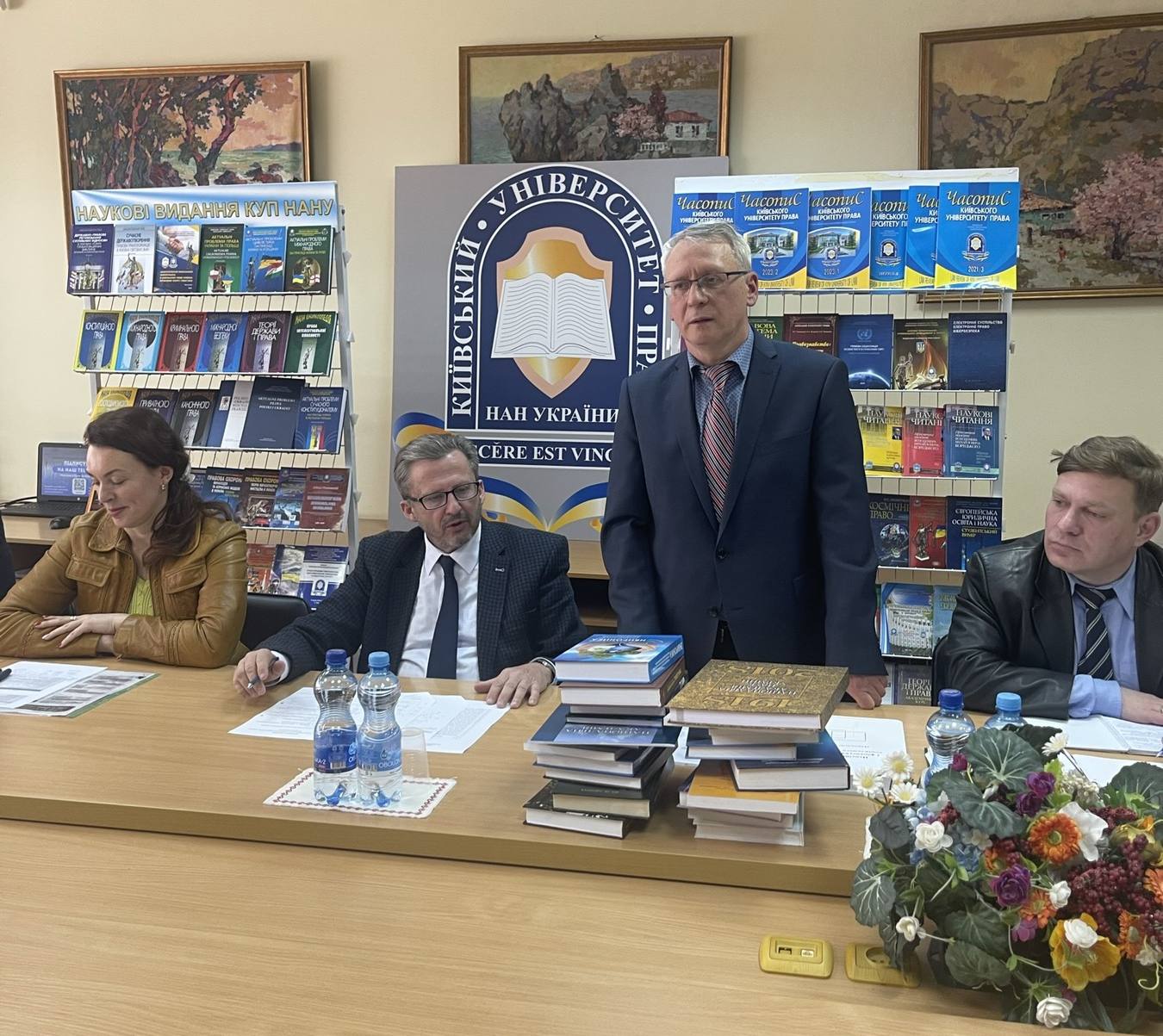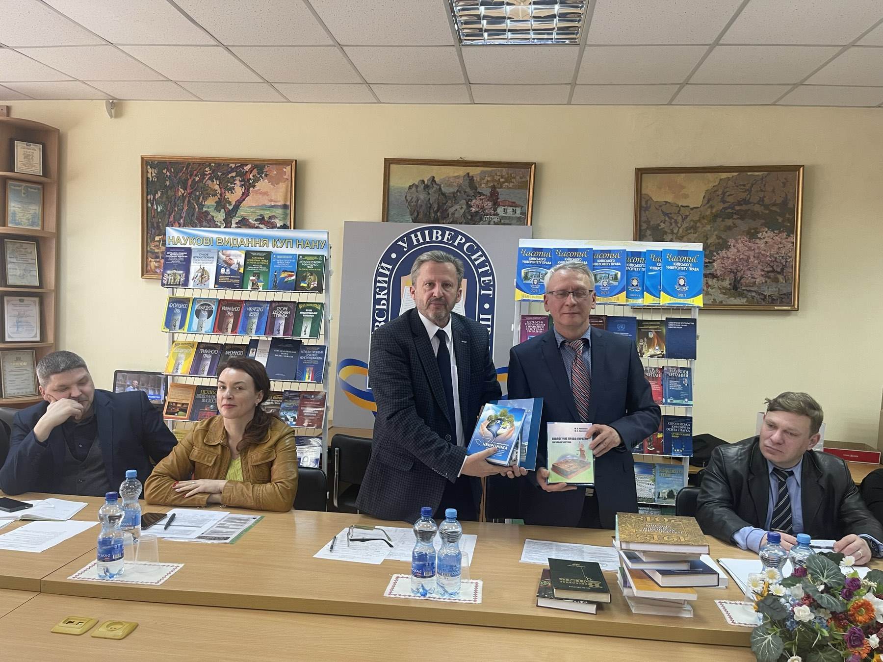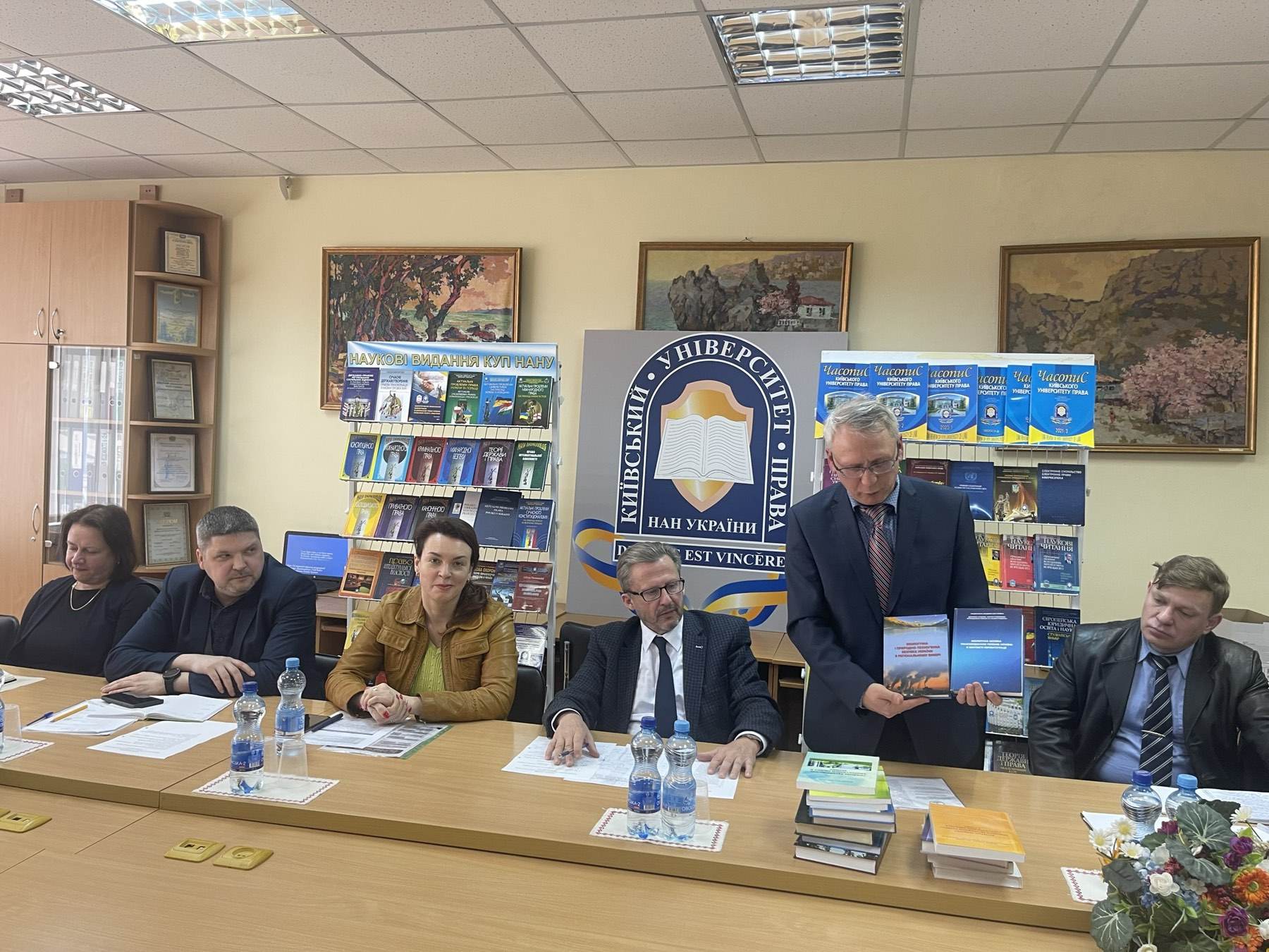 Після свого виступу, в подальший розвиток партнерських відносин між Київським університетом права НАН України та Інститутом економіко-правових досліджень імені В.К. Мамутова НАН України, Володимир Устименко передав для наукової бібліотеки університету велику кількість наукової літератури авторства співробітників очолюваного ним інституту.