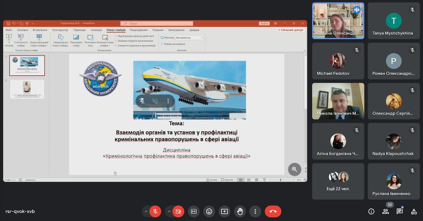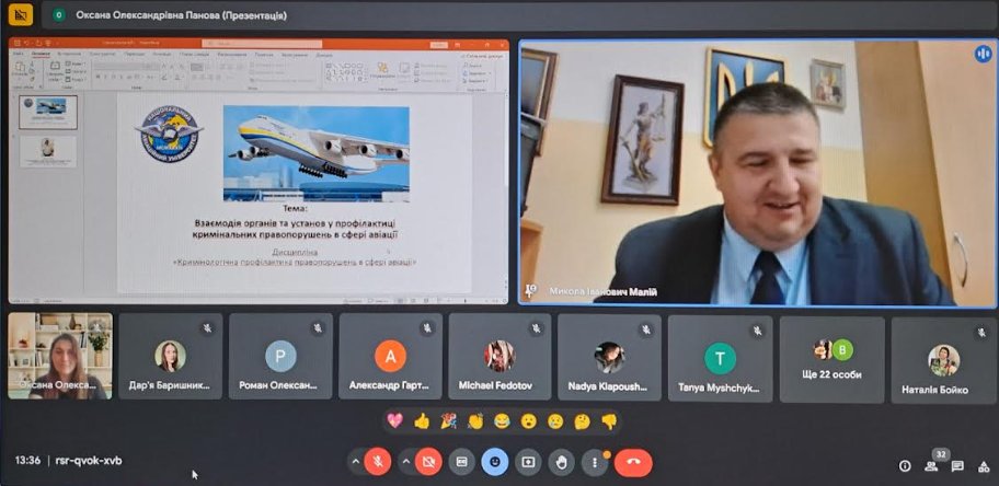 Дана онлайн-зустріч відбулася на запрошення доктора юридичних наук, професора, завідувача кафедри кримінального права і процесу Юридичного факультету Національного авіаційного університету Софії Лихової та професора кафедри кримінального права і процесу Юридичного факультету Національного авіаційного університету Оксани Панової.