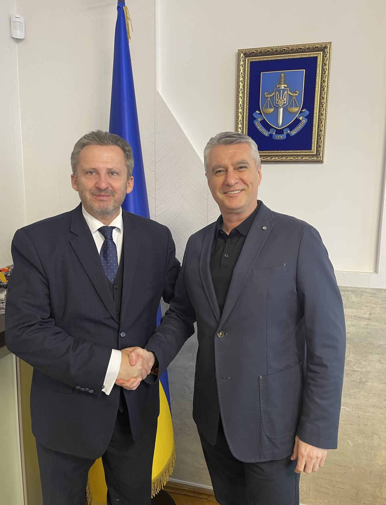 У рамках робочої поїздки ректора Київського університету права НАН України Юрія Бошицького до Закарпатської області відбулася його зустріч з керівником Закарпатської обласної прокуратури Анатолієм Ковальчуком. Під час зустрічі проф. Бошицький розповів про роботу Київського університету права НАНУ, досягнення університету і запропонував можливі напрямки співпраці з обласною прокуратурою, зокрема, у сфері освіти та правничої експертизи. Керівник Закарпатської обласної прокуратури пан Ковальчук висловив зацікавленість щодо наданих пропозицій та готовність детально їх розглянути. Керівники подякували один одному за зустріч і домовилися про продовження контактів.