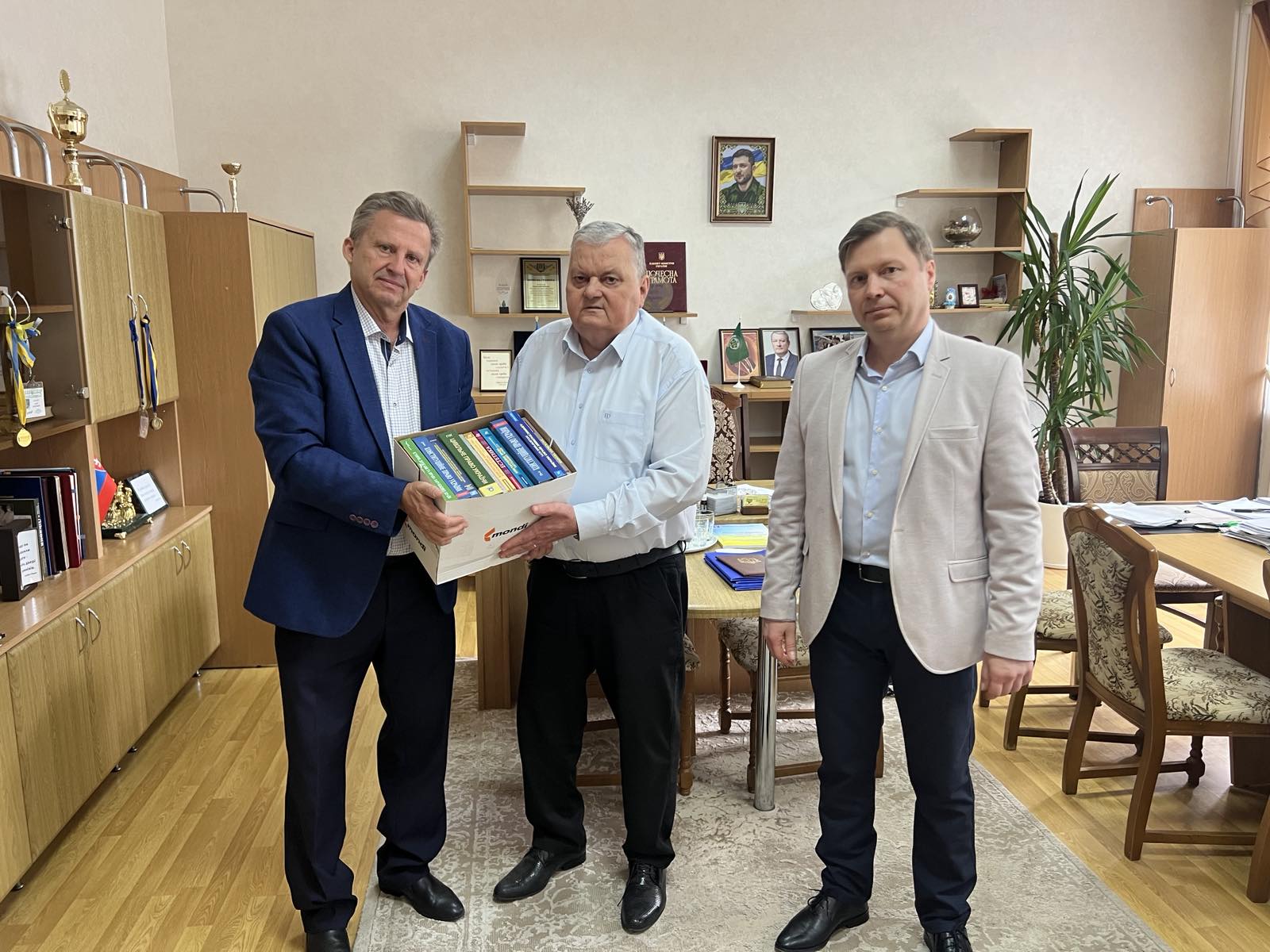 На завершення зустрічі ректор КУП НАНУ Ю. Бошицький традиційно передав для бібліотеки Коледжу правничу літературу в рамках проекту «Популяризація юридичної освіти та професії в колах учнівської молоді України», який проводиться за партнерства видавництва «ЮРІНКОМІНТЕР».