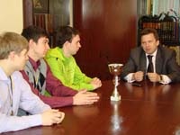 Зустріч пройшла у теплій і дружній атмосфері. Ректор подякував за перемогу, побажав щоб на цьому команда не зупинялася і надалі радувала нас своїми перемогами, прославляючи наш університет. А також відзначив, що фізичне виховання та спорт в сучасному житті набувають нових рис, в тому числі і в підготовці фахівців, тож зі свого боку пообіцяв команді всебічну підтримку.