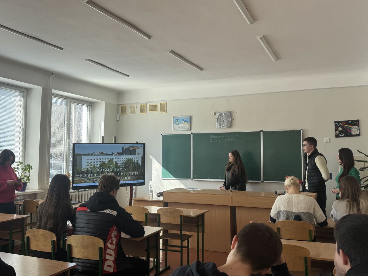 Зустріч відкрила старший викладач кафедри загальнотеоретичних правових та гуманітарних дисциплін Ірина Смолій, яка акцентувала увагу на перевагах здобуття вищої юридичної освіти саме у Рівненському інституті КУП НАНУ. Сформована правнича традиція, надійна освітня база, кваліфікований науково-педагогічний колектив – це важливі деталі успішного іміджу інституту.